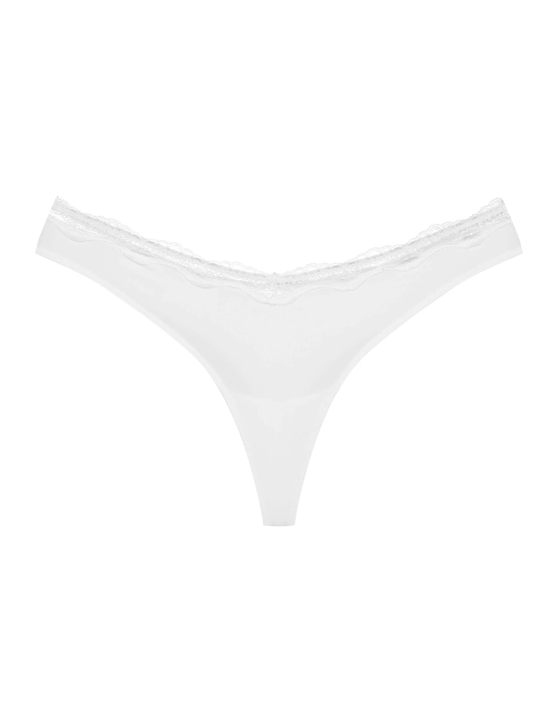 Chiloți tanga cu dantelă florală pe marginea taliei.