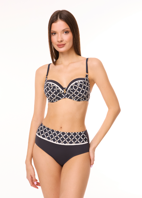 Slipuri de baie tip culotte cu talie medie. Datorită tehnologiei speciale de protecție împotriva clorului și a razelor ultraviolete, costumele de baie Milavitsa se usucă rapid, nu își pierd culoarea la soare și nu se deformează după o utilizare îndelungată și spălări repetate.