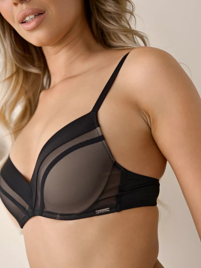 Setul este format dintr-un sutien cu cupe modelate și chiloți brazilieni.