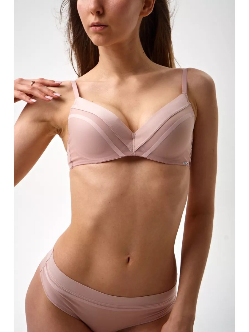 Setul este format dintr-un sutien cu cupe modelate și chiloți brazilieni.