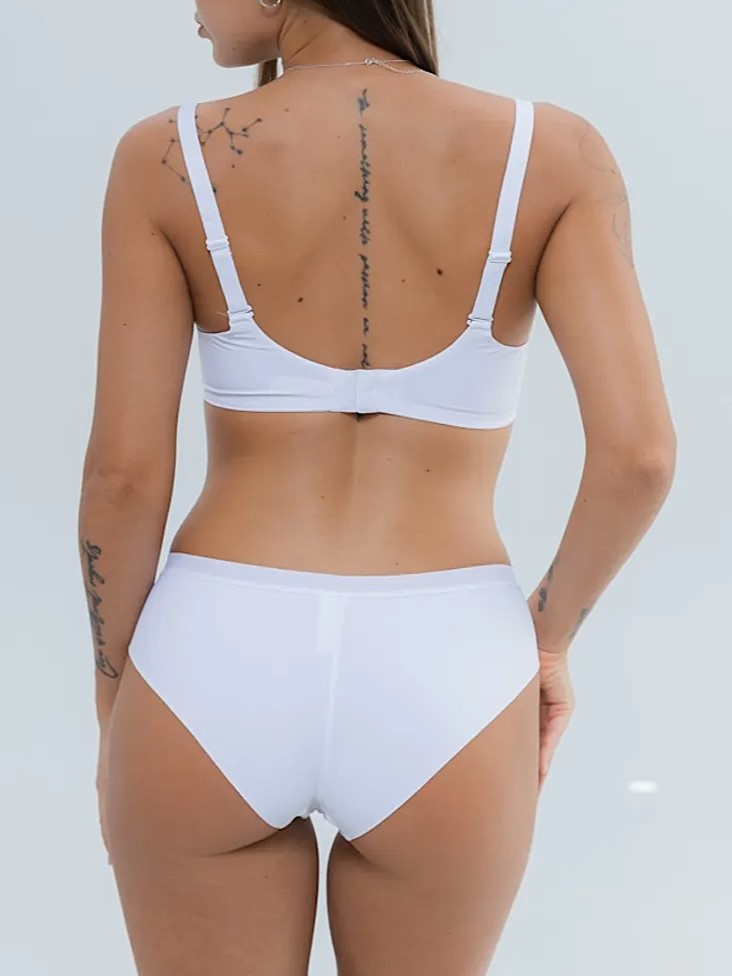 Setul este format dintr-un sutien cu cupe modelate și chiloți slip.