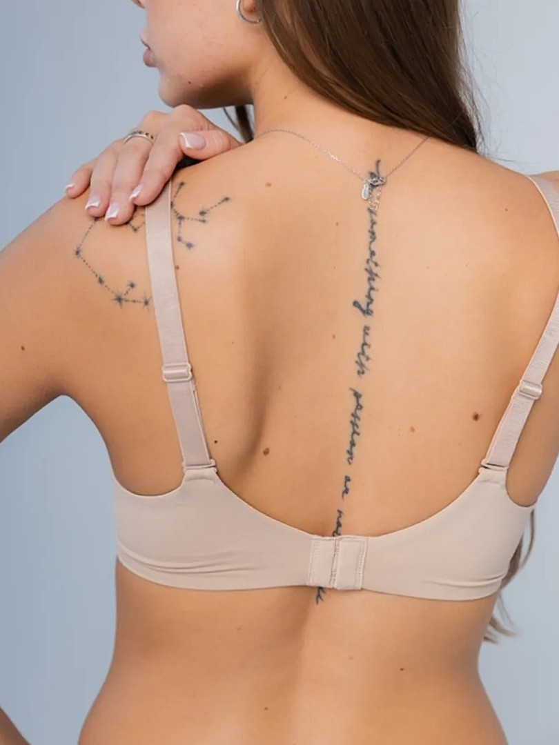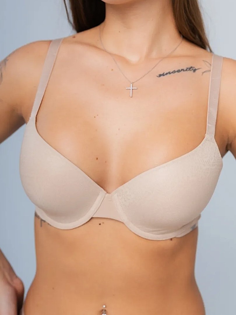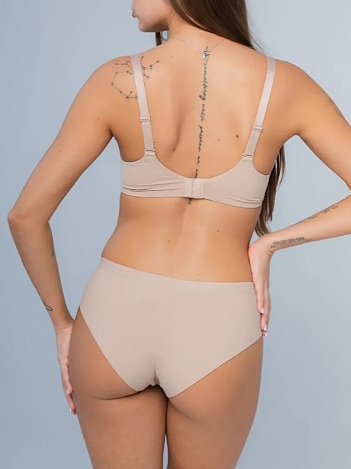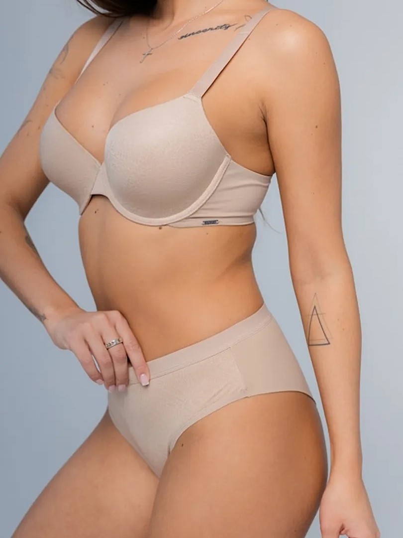 Setul este format dintr-un sutien cu cupe modelate și chiloți slip.