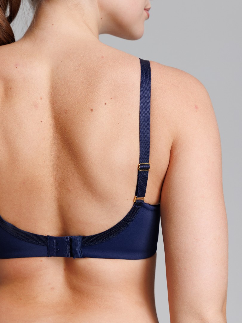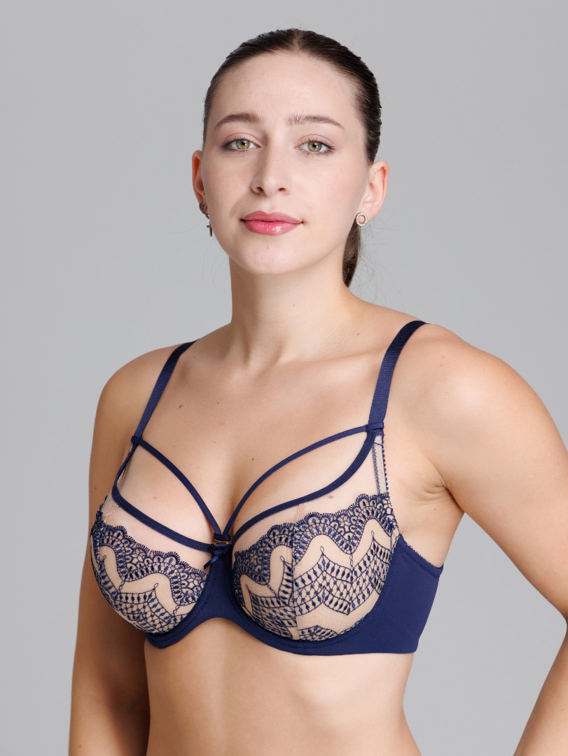 Sutien cu cupe duble pe carcas. Cupele sunt decorate cu dantelă și plasă. Bretele decorative.