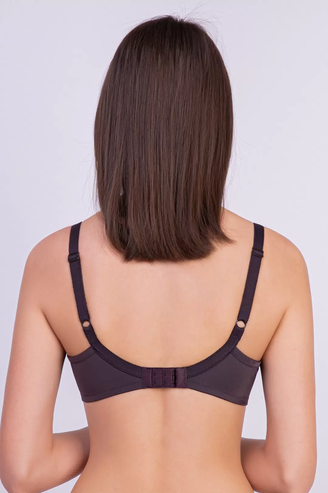 Sutien din tricotaj neelastic si tesatura elastica. Suport din metal. Cupe moi cu trei straturi. Bretele fixate. Sistem de inchidere cu patru linii de reglare.