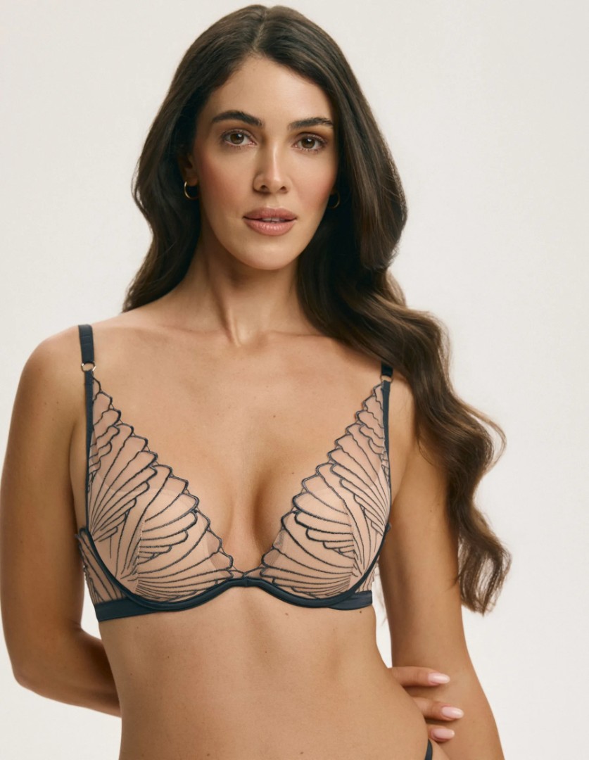 Sutien push-up. Fermecă prin eleganța broderiei, care se așează pe piele ca o dantelă delicată, cu un ritm în formă de evantai. Plasa ușoară conferă o senzație de lejeritate.